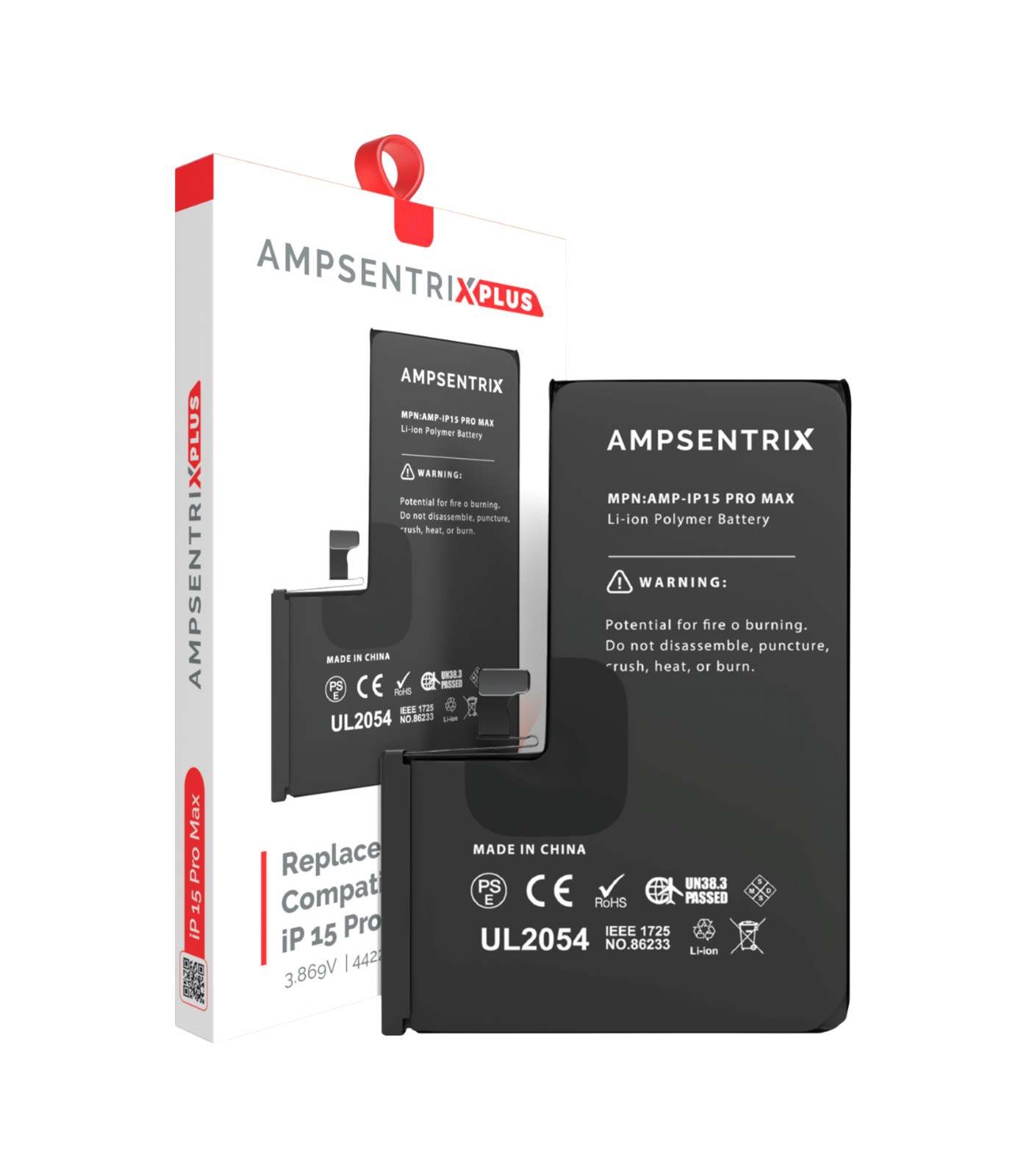• Batería de reemplazo para iPhone 15 Pro Max de la mejor calidad (Ampsentrix: Plus).