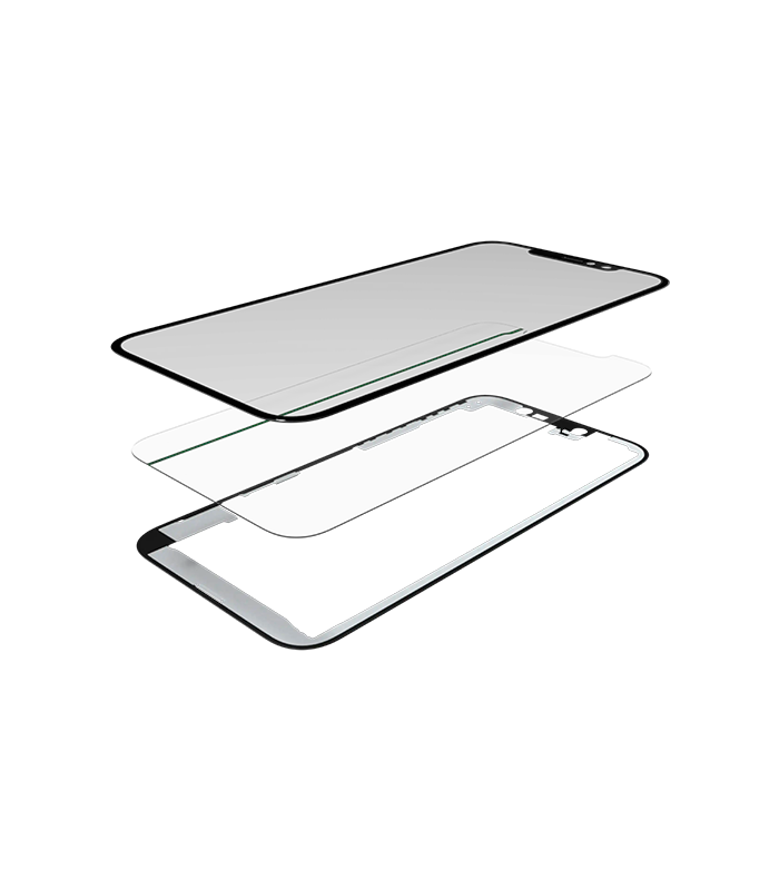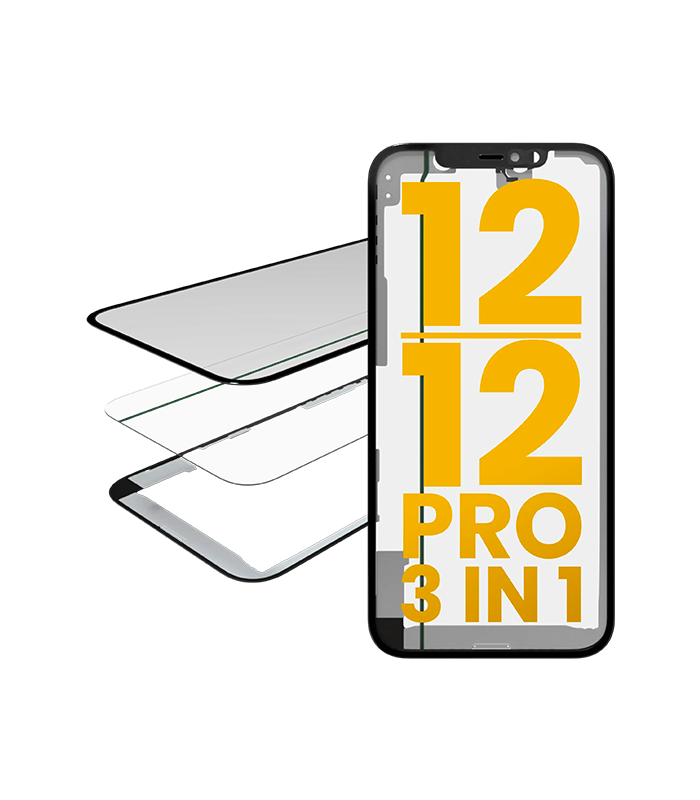 • Vidrío de nueva tecnología con marco y OCA preinstalado para iPhone 12 / 12 Pro (3 en 1).